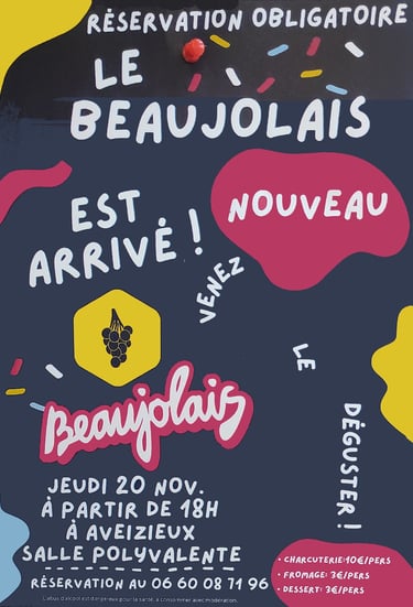 Jeudi 20 Novembre : Soirée Beaujolais Nouveau - Salle Polyvalente - La Ronde des Pitous