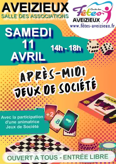 Samedi 11 Avril 2026 - Après-midi JEUX DE SOCIÉTÉ - Avec la participation d'une Animatrice Jeux de Société