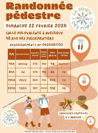 Dimanche 22 Février 2026 : Marche de la Ronde des Pitous - Salle des Associations - Ronde des Pitous