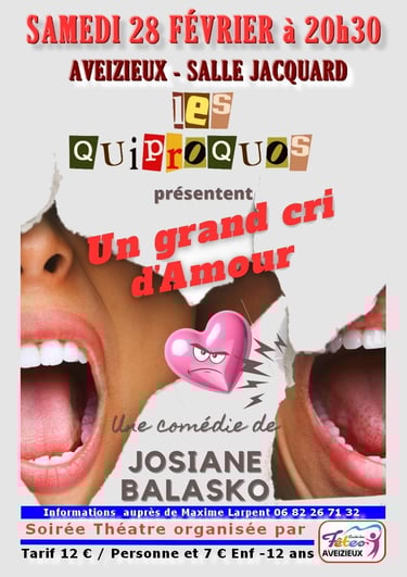 Samedi 28 Février 2026 : Soirée Théâtre - Un grand cri d'amour - Salle Jacquard