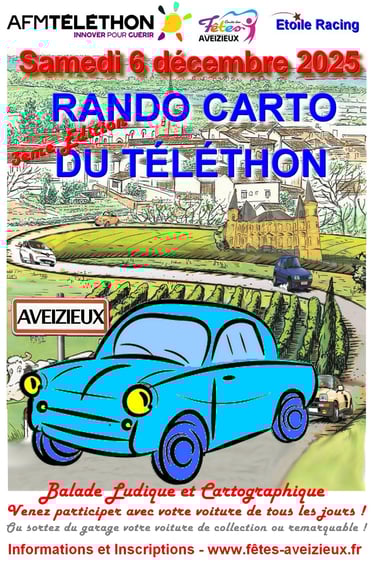 Pour soutenir le Téléthon 2025 l’association « Étoile Racing » d’Aveizieux, avec le Comité des Fêtes et au bénéfice de l’AFM TÉLÉTHON, vous proposent un Rando Cartographique, balade ludique et de navigation avec roadbook sur les routes touristiques du Forez.